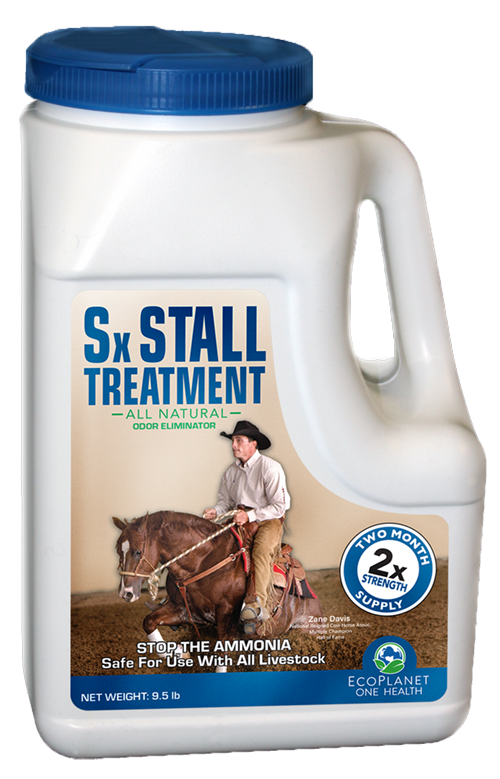 Sx Stall Treatment stops ammonia in horse stalls and barns. It is extremely effective in eliminating odor, safe, eco-friendly and extends bedding life.